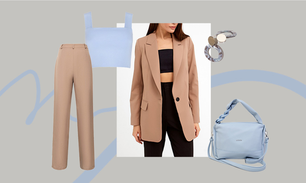На фото: пиджак MIST, брюки MIST, топ MINAKU, серьги Queen fair.