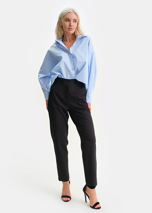 - Брюки, прямые со стрелкой, слегка зауженные.