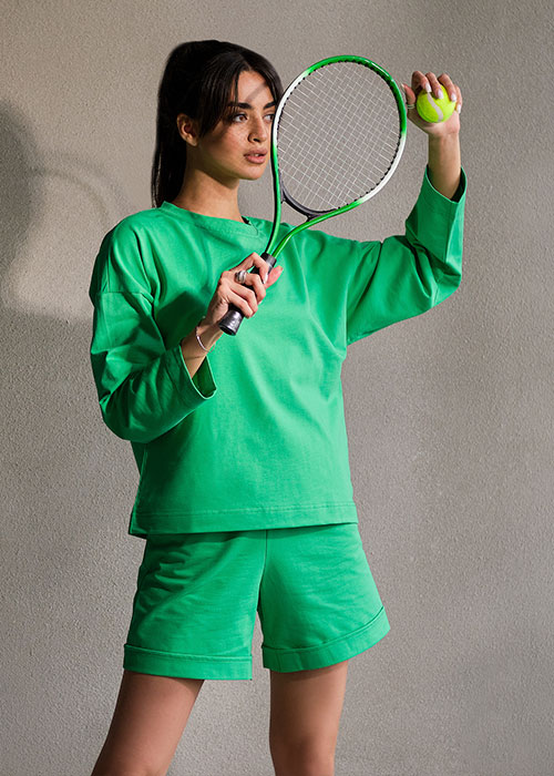 Спортивная одежда из мягких или эластичных тканей не сковывает движений и приятна к телу. Добавьте к образу удобную обувь на плоской подошве, минималистичные аксессуары — и суперкомфортный наряд готов.