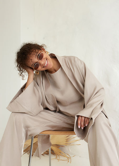 На фото: пиджак MIST, брюки MIST, топ MINAKU, серьги Queen fair.