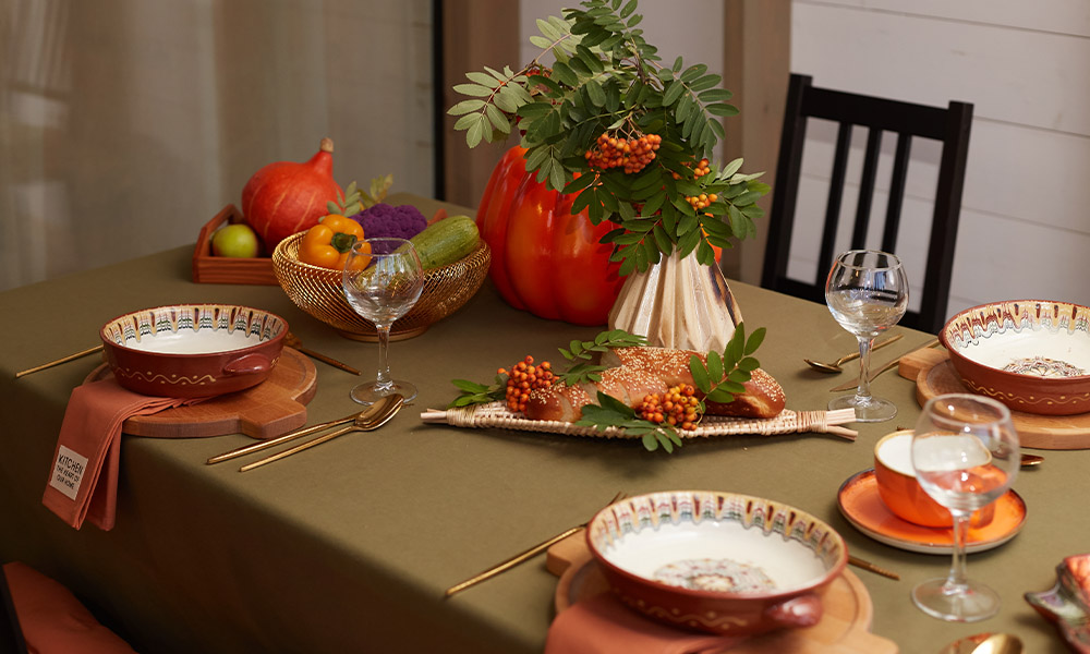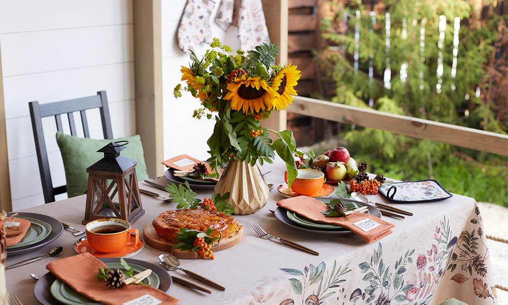 Преобразить помещение так, чтобы вечера стали душевными, а встречи с близкими по-особенному тёплыми — легко! Красивая скатерть в приглушённых тонах, а также тематические прихватки и полотенца создадут нужную атмосферу.