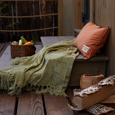 Пока погода позволяет наслаждаться осенними вечерами, предлагаем вам налить чашку горячего чая и уединиться за чтением книги на улице. Сделать такой досуг приятнее и уютнее помогут подушки, плед и плетёный коврик.