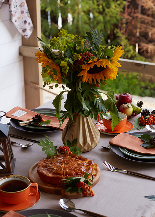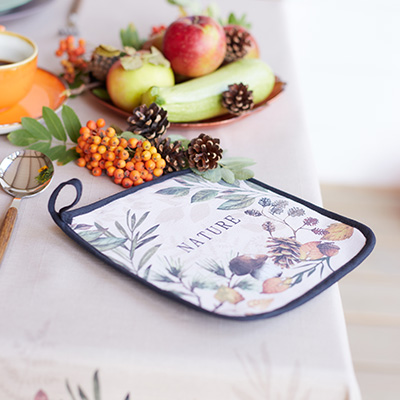 Преобразить помещение так, чтобы вечера стали душевными, а встречи с близкими по-особенному тёплыми — легко! Красивая скатерть в приглушённых тонах, а также тематические прихватки и полотенца создадут нужную атмосферу.