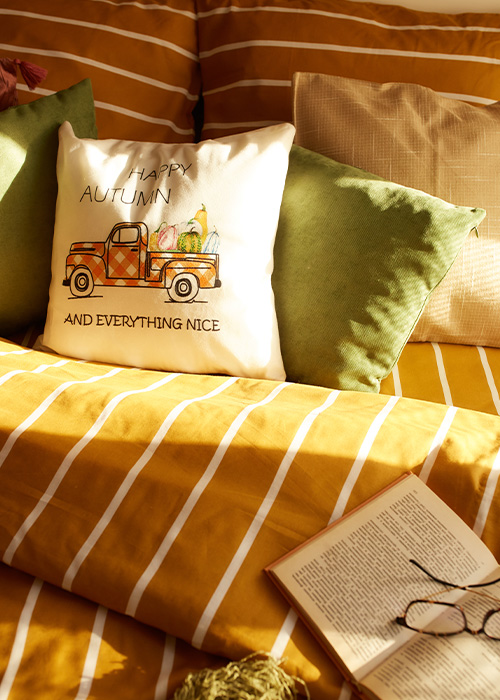Осень приносит с собой не только яркие краски, но и заметное похолодание, а вместе с ним и сезонную хандру. Правильно оформленный интерьер поможет не поддаться грусти и подчеркнуть тёплую атмосферу, когда за окном моросит дождик. Вдохновляйтесь нашей осенней подборкой текстиля от марки