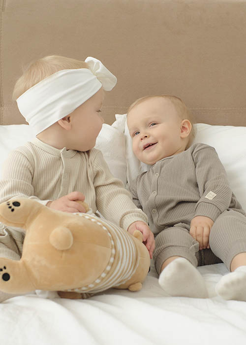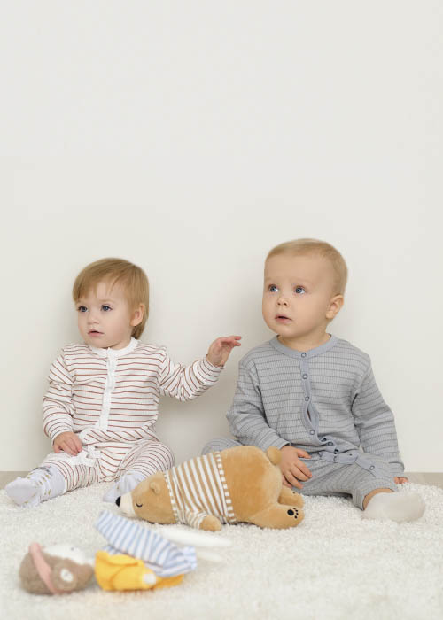 В новую коллекцию BASIC LINE вошли хлопковые и вязаные модели. На передней части комбинезонов дизайнеры предусмотрели длинную планку с пуговицами. А для вязаных вариантов сделали застёжку у горлышка и между ножек — чтобы родителям было удобно одевать активных карапузов.