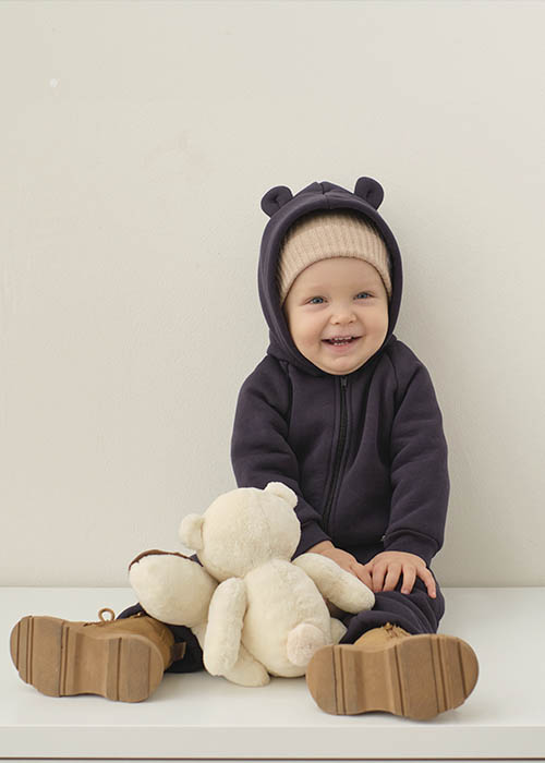 Чтобы прогулки для малыша проходили максимально приятно, в новой коллекции BASIC LINE есть трогательные костюмы с ушками. Они выполнены из мягчайшего футера с начёсом, поэтому ребёнок будет чувствовать комфорт при движении и будет надёжно защищён от холода.