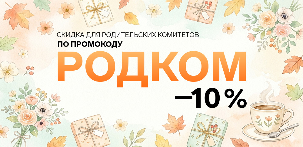 Предлагаем особые условия сотрудничества родительским комитетам: с 17 марта по 30 апреля* при заказе от 3 000 ₽ дарим скидку** до 10 % на розничные цены.