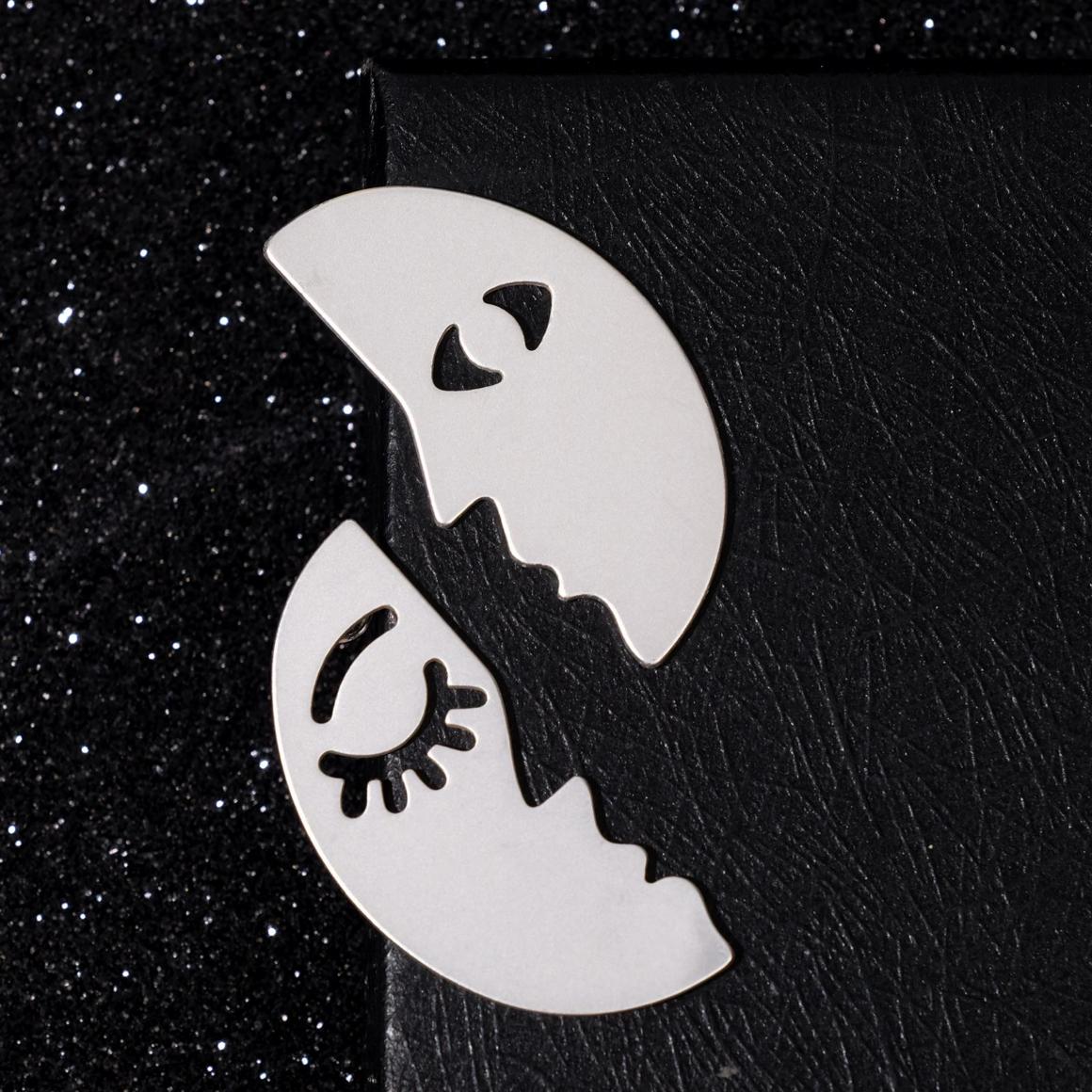 Украшения подойдут тем, кому нравится тренд на асимметричность. Каждая серьга — это месяц, а в паре они собираются в полный лунный диск.