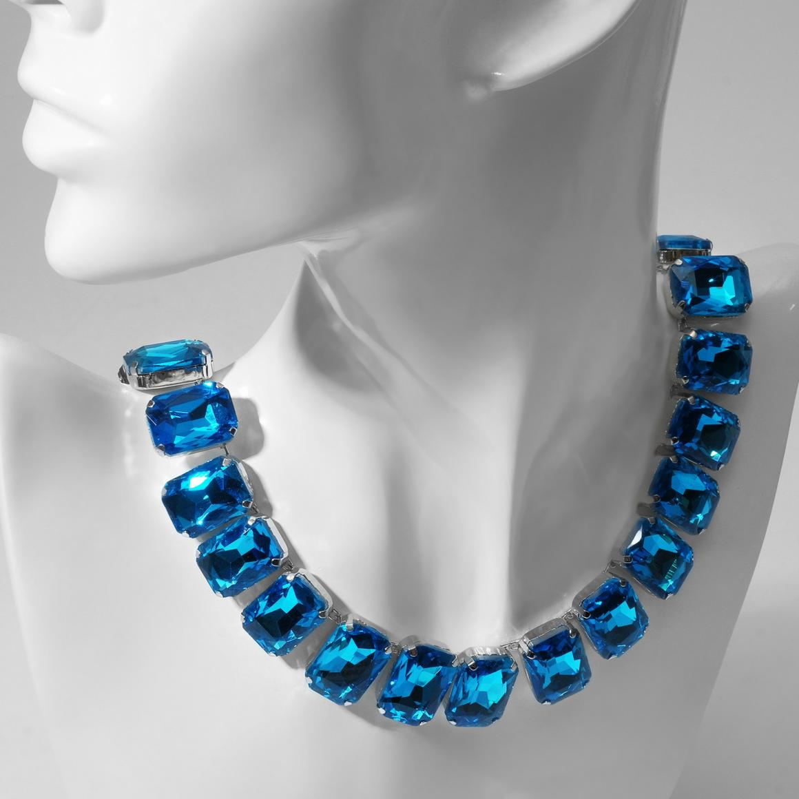У этого колье нет и намёка на ракеты, астронавтов или далёкие звёзды. Но глубокий голубой цвет придаёт украшению космический флёр. Сочетайте его с одеждой цвета металлик — и получите образ неземной красоты.