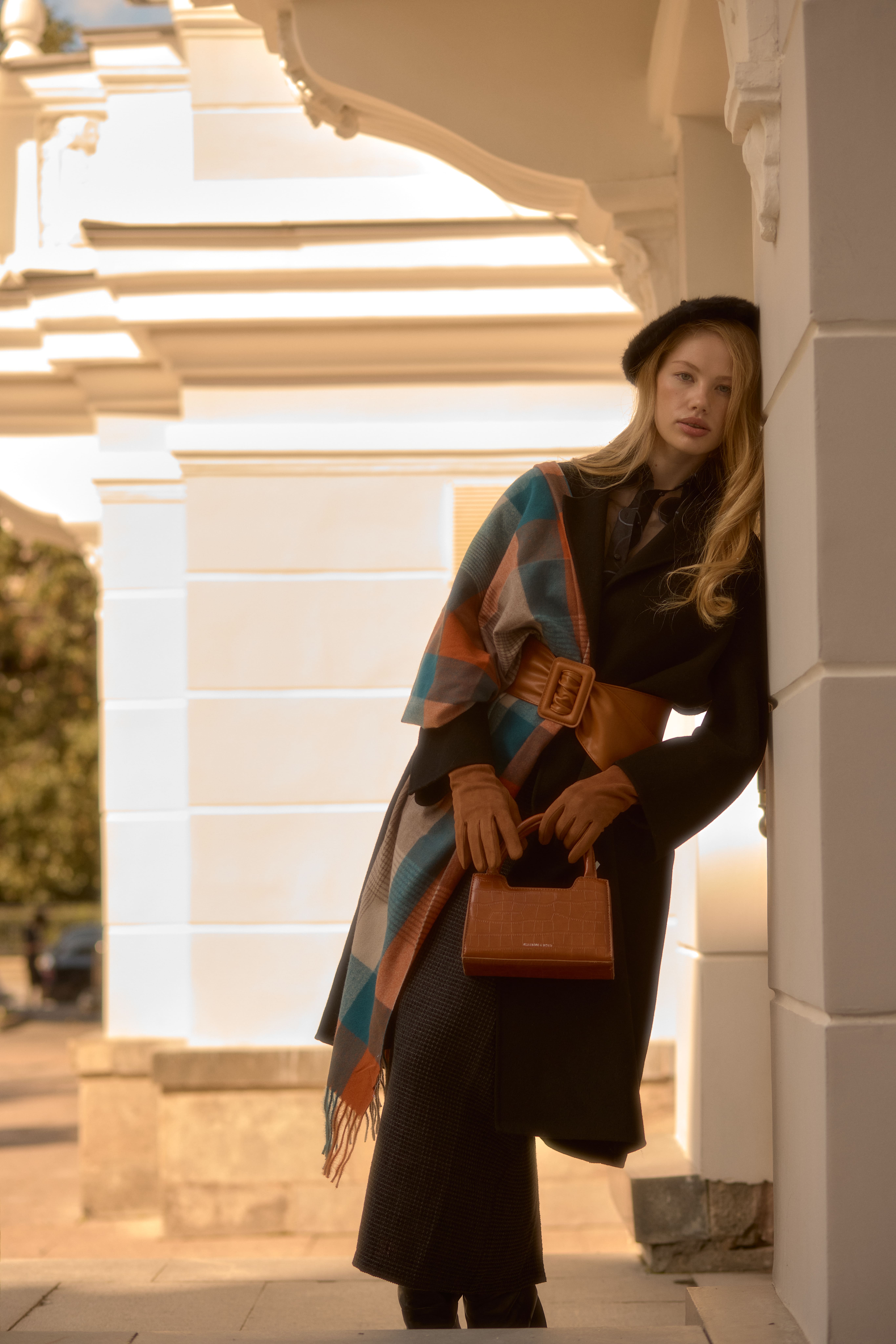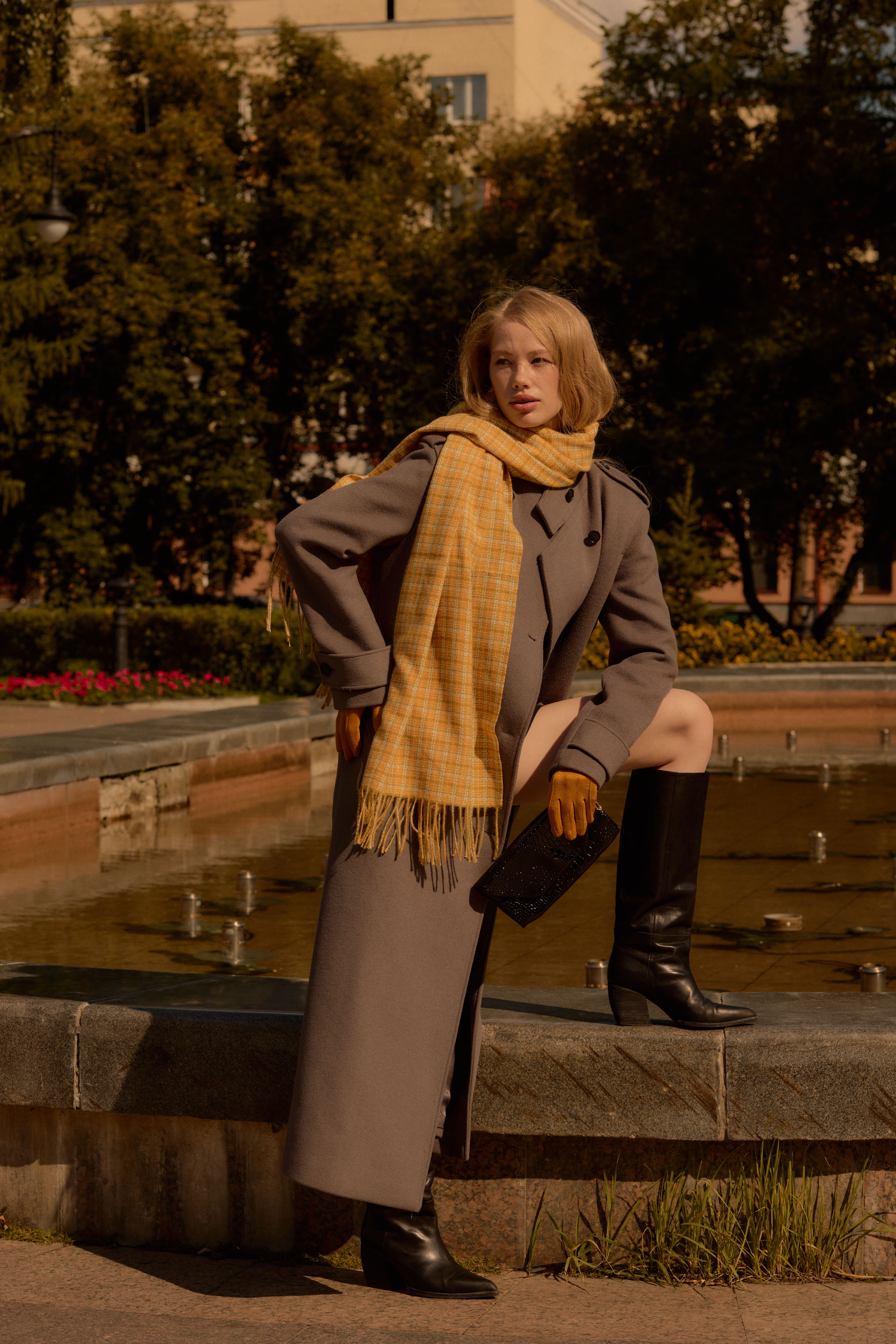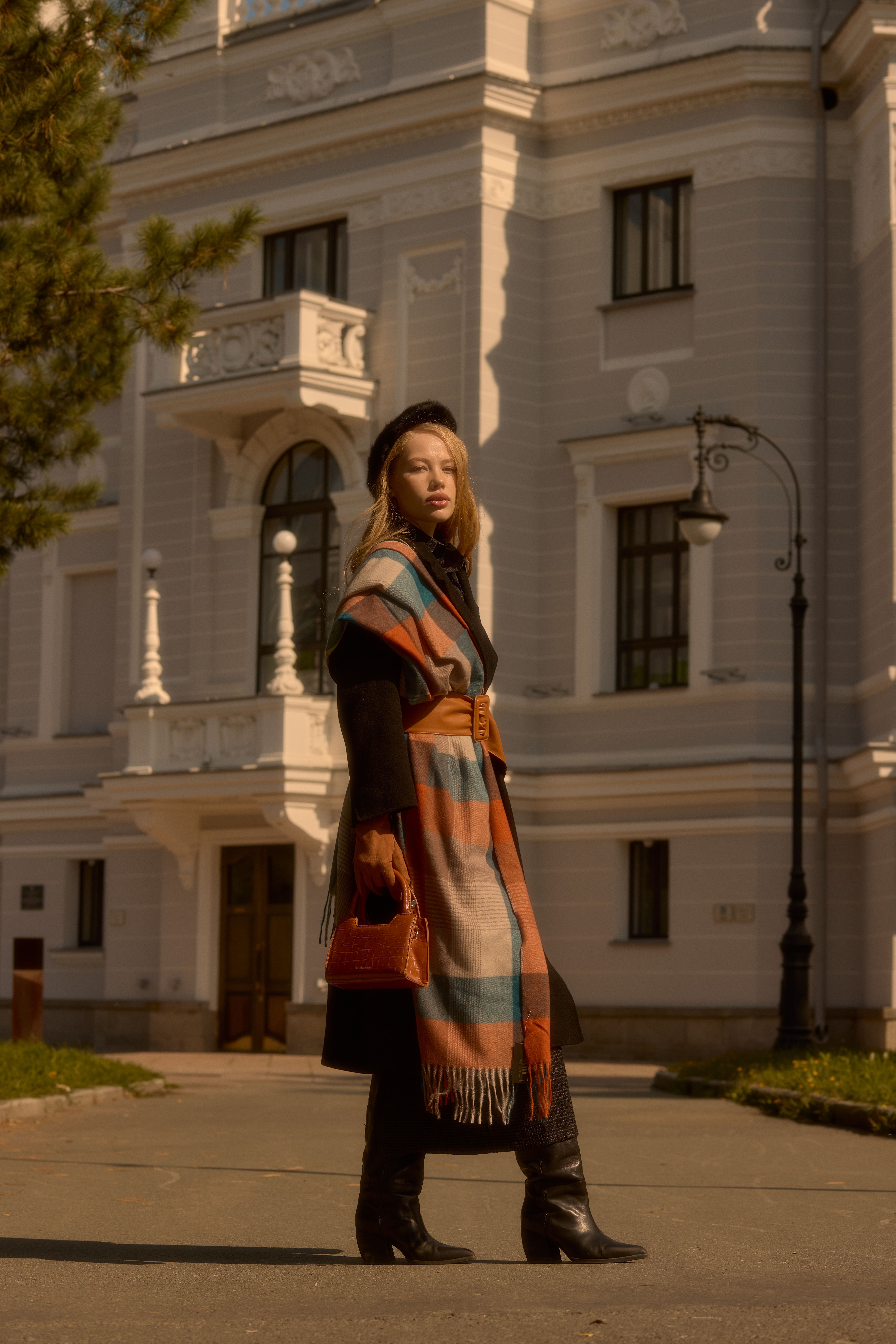 Клетка — принт, который годами не выходит из моды. Пробуйте её разные варианты: тартаны, виндзорскую клетку, аргайл. Особенно хорошо смотрится объёмный аксессуар с широкими и ярко выраженными линиями. Такой шарф можно даже повязать на голову, заменив им шапку. Если хотите привлечь внимание к образу, выбирайте необычные и динамичные сочетания цветов: фиолетовый с оранжевым, зелёный с голубым, серый с розовым. Эти оттенки станут отличной заменой традиционным чёрно-белым и бежевым расцветкам.