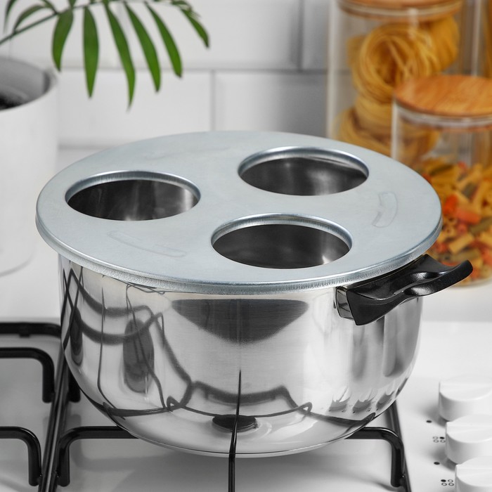 В кастрюле вскипятите воду. Аккуратно, чтобы не лопнула банка, залейте кипяток до самого верха. Накройте банку чистой крышкой (не закручивая) и оставьте на 15–20 минут прогреваться.